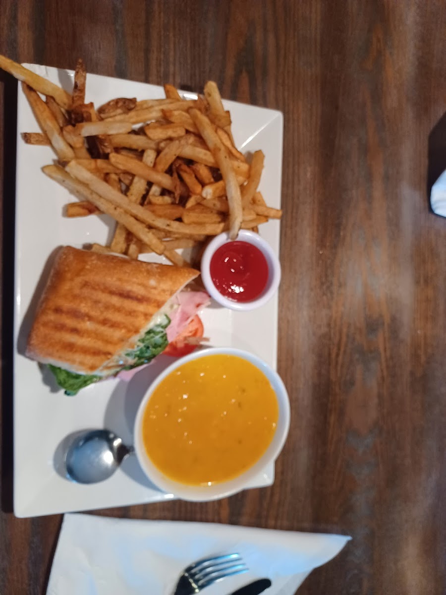 Decided to eat here for lunch on a Wednesday. It wasn't busy when we got there so we got seated right away. The waitress was nice and very quick. Not much time passed from the time we ordered to the time we got the food. I ordered a chicken wrap which was very good. The fries were nice and crispy. My husband ordered a rice dish which was very tasty. He enjoyed the leftovers the next day for lunch. All in all great experience and I'd definitely return. The restaurant is wheelchair accessible.