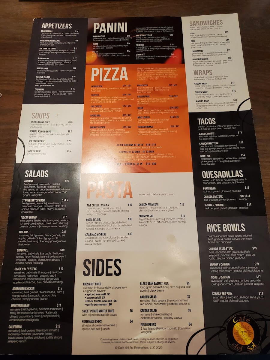 Vegetarian options abound, with flavorful salads and flatbreads catering to diverse tastes. Regulars appreciate not only the quality of food but also the reasonable pricing and exceptional service provided by Misty and her team. Whether you're stopping by for a lunch meeting or taking a break during a road trip, Café del Sol promises a warm welcome and a menu that will surely leave you eager for your next visit.